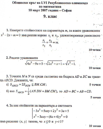 Olimpiada Po Matematika Prvi Krg Sofiya 2007
