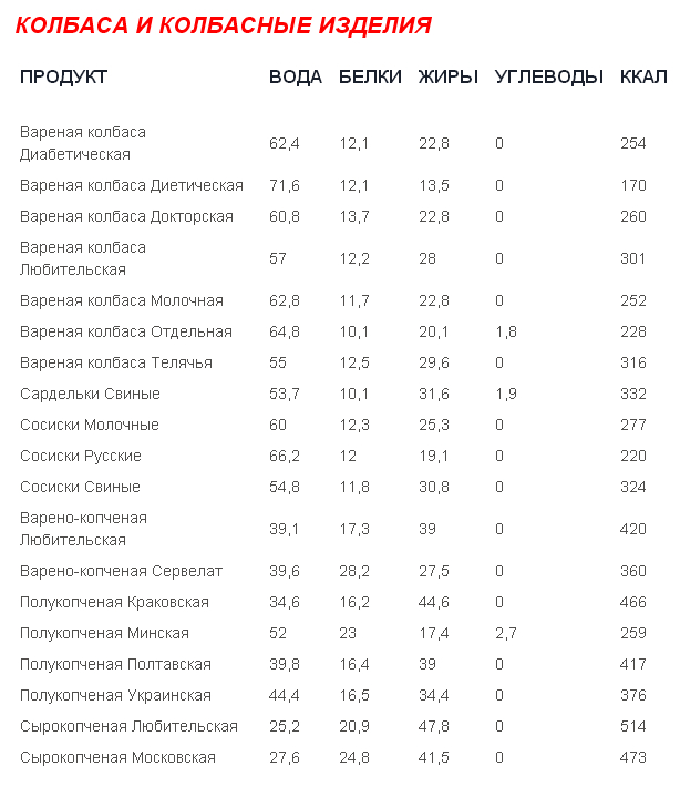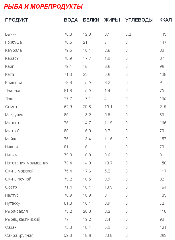 Tablica S Kalorii Ot Osnovni Hrani Produkti Za Otslabvane Kalorii Menyu